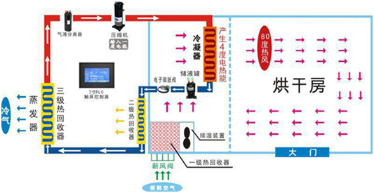 空氣能烘干設備,集除濕、加熱、制冷、排溫、通風為一體智能化設備,為新型節能減排干燥設備。產品安裝方便、運行安全可靠、使用壽命長。