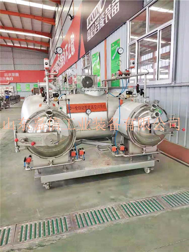 全自動果蔬脆片膨化線實現了果蔬加工從油炸到非油炸的飛躍,采用的果蔬壓差膨化干燥技術,是一種新型、環保、節能的非油炸膨化干燥技術,其基本原理是將經過預處理的水果或蔬菜原料,在膨化罐中升溫加壓,一段時間后瞬間泄壓,物料內部水分瞬間汽化蒸發膨脹,并在真空狀態下脫水干燥,進而實現體積膨脹、口感酥脆的果蔬膨化休閑食品。