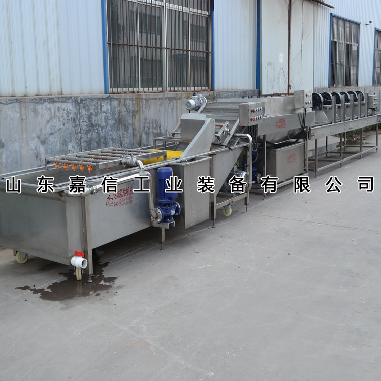 整線采用SUS304不銹鋼材料制作,符合食品安全標準。適用于芹菜、韭菜、菠菜、大蔥、茼蒿、茴香、香菜等葉類蔬菜的清洗和風干瀝水。適合凈菜加工廠,大型食品配送中心等。