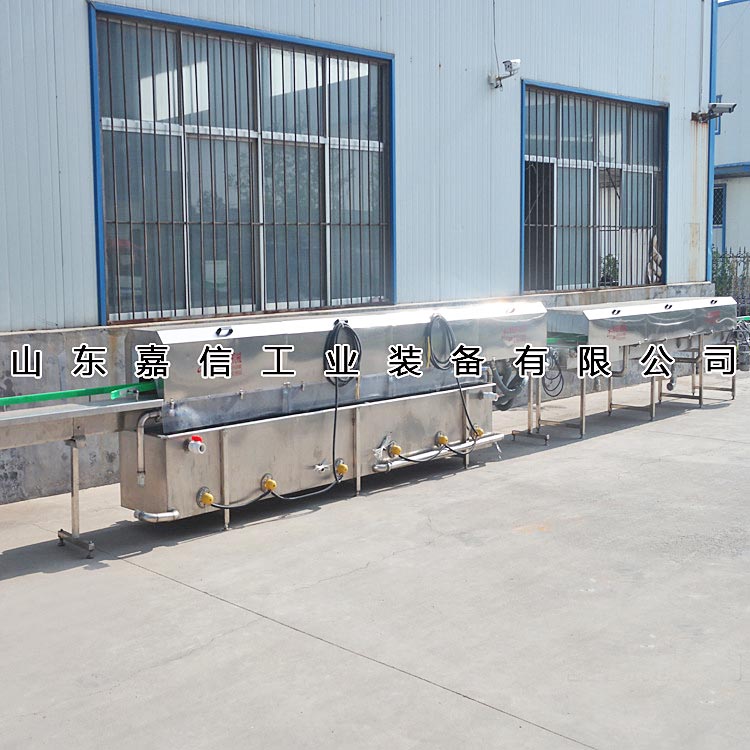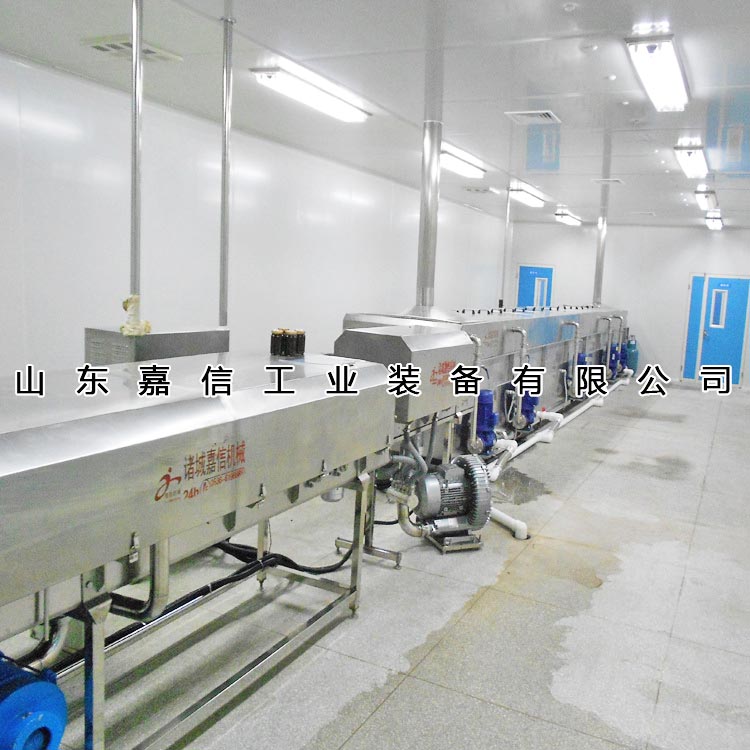 本機主要應用于食品加工企業。適用于封罐后罐頭外表面水漬、油漬等雜物的清洗,先熱水后清水全方面高壓沖洗,噴沖水過濾后可循環使用,是為特定尺寸瓶裝、灌裝產品的清洗、吹干而設計的。能很好的去除瓶身的污漬,達到貼標前的要求。該機運行平穩,節約資源。整機采用304不銹鋼制造,符合食品安全標準,是罐頭生產廠家、飲料生產廠家的不二選擇。